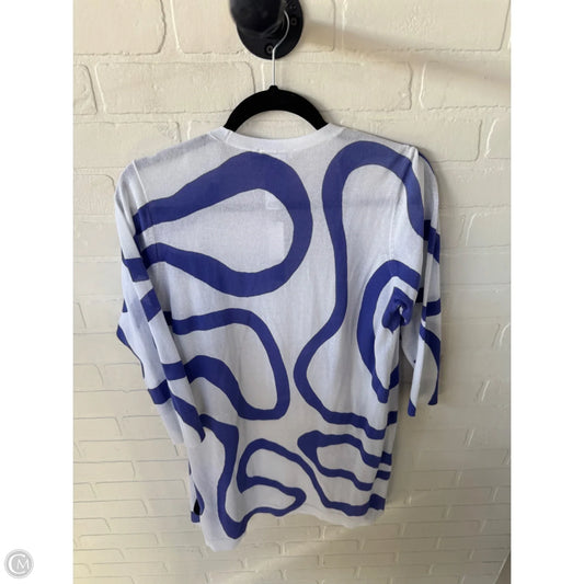 Sweater Cardigan By Ann Taylor In Blue & White, Size: M