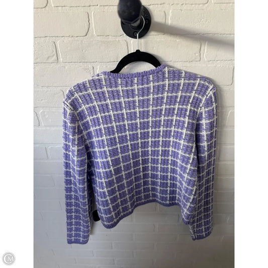 Sweater Cardigan By Chicos In Purple & White, Size: M