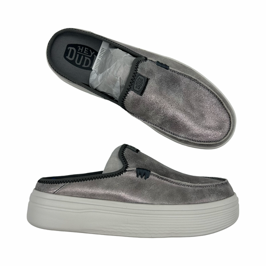 Shoes Flats By Hey Dude In Silver, Size:10