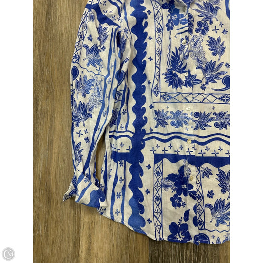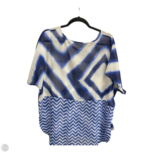 Blouse Short Sleeve By Chicos In Blue & White, Size: L