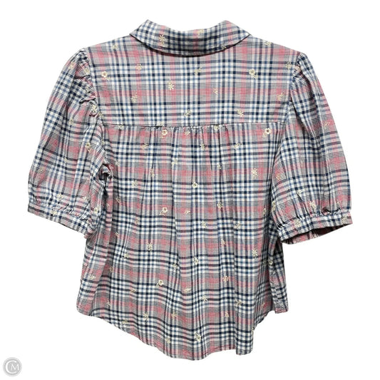 Top Short Sleeve By Anthropologie In Plaid Pattern, Size: S