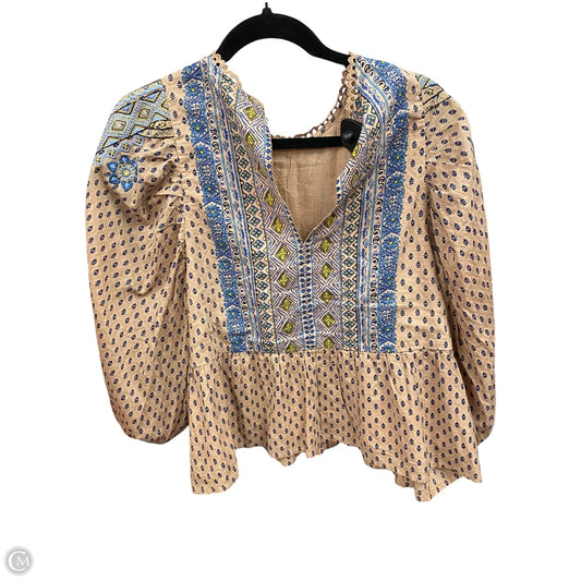 Top Long Sleeve By Anthropologie In Blue & Tan, Size: L