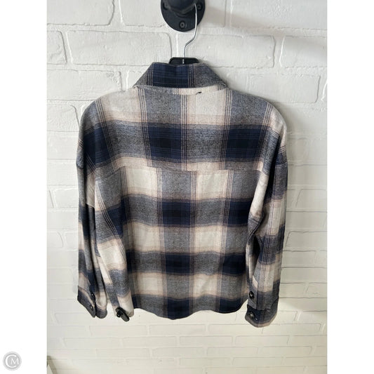 Jacket Shirt By Blu Pepper In Blue & Brown, Size: S