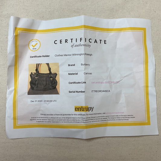 Handbag Luxury Designer By Burberry, Size: Large
