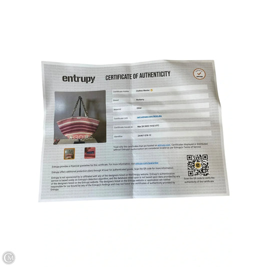 Tote Luxury Designer By Burberry, Size: Medium