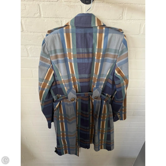 Coat Trench Coat By Cabi In Blue & Brown, Size: M
