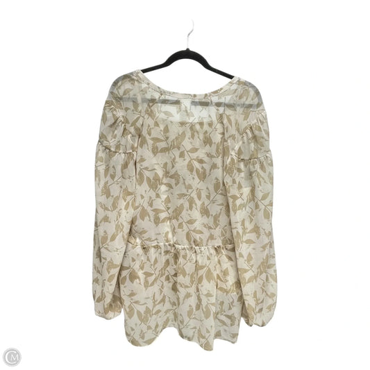 Blouse Long Sleeve By Cabi In Tan & White, Size: Xl