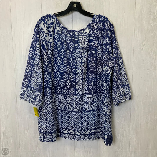 Top 3/4 Sleeve By Cj Banks In Blue & White, Size: 1x