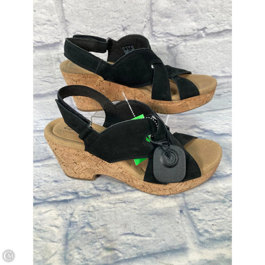 Sandals Heels Wedge By Clarks In Black & Brown, Size: 9.5