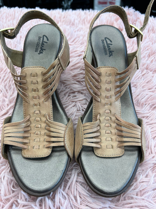 Sandals Heels Wedge By Clarks In Brown, Size: 8