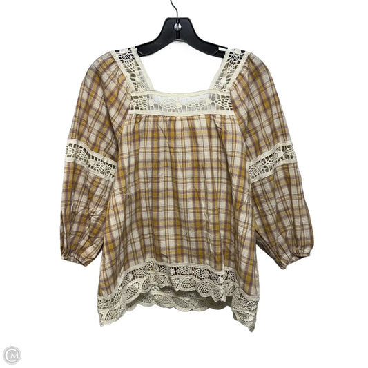 Top 3/4 Sleeve By Easel In Plaid Pattern, Size: S