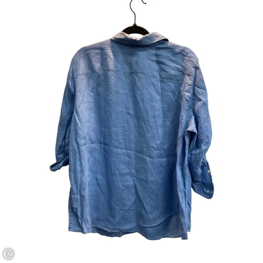 Linen Top Short Sleeve By Lauren By Ralph Lauren In Blue, Size: XL