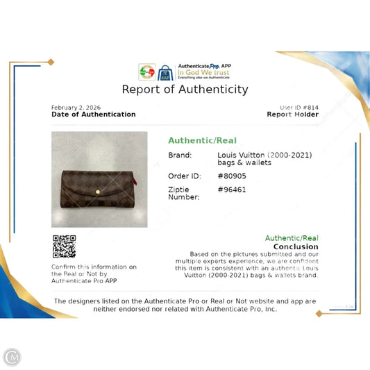 Wallet Luxury Designer By Louis Vuitton, Size: Medium