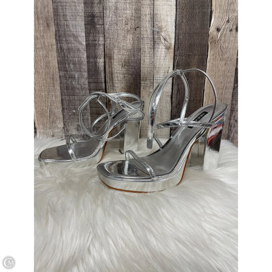 Sandals Heels Block By Nine West In Silver, Size: 9