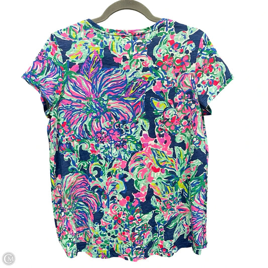 Top Short Sleeve Designer By Lilly Pulitzer In Blue & Pink, Size: M