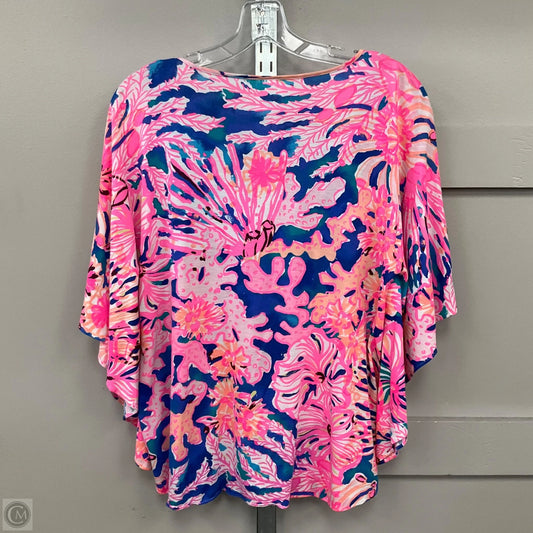 Top Short Sleeve Designer By Lilly Pulitzer In Blue & Pink, Size: S