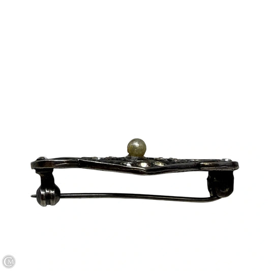 Vintage Sterling Silver Crystal & Pearl Filigree Brooch Pin