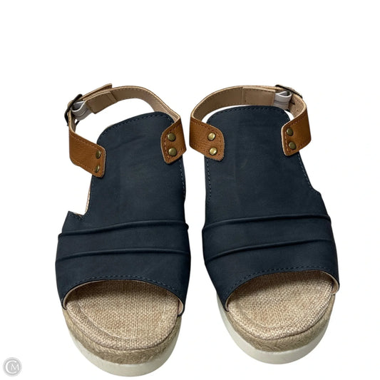 Sandals Heels Wedge By Cme In Blue & Brown, Size: 8