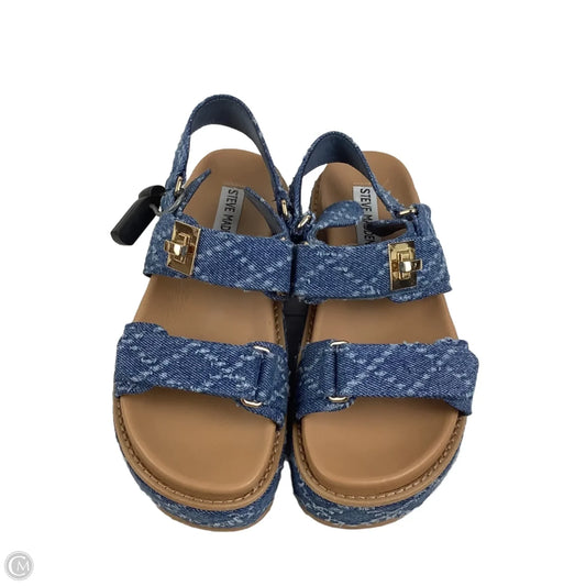 Sandals Heels Platform By Steve Madden In Blue Denim, Size: 6.5