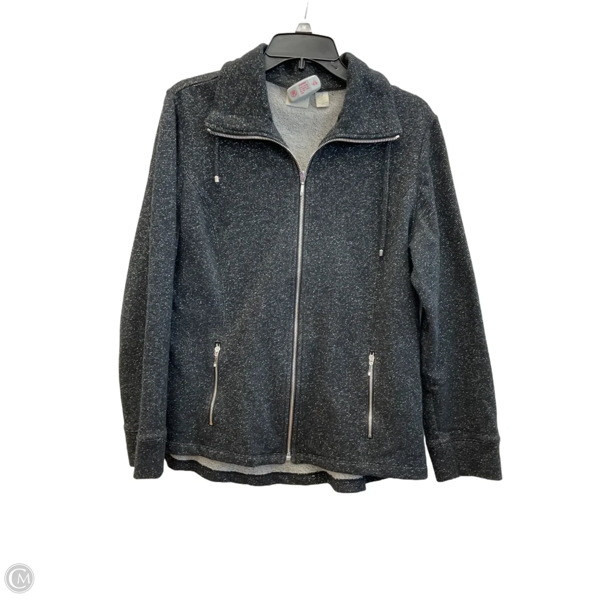 Athletic Top Long Sleeve Collar By Zenergy By Chicos In Grey, Size: L