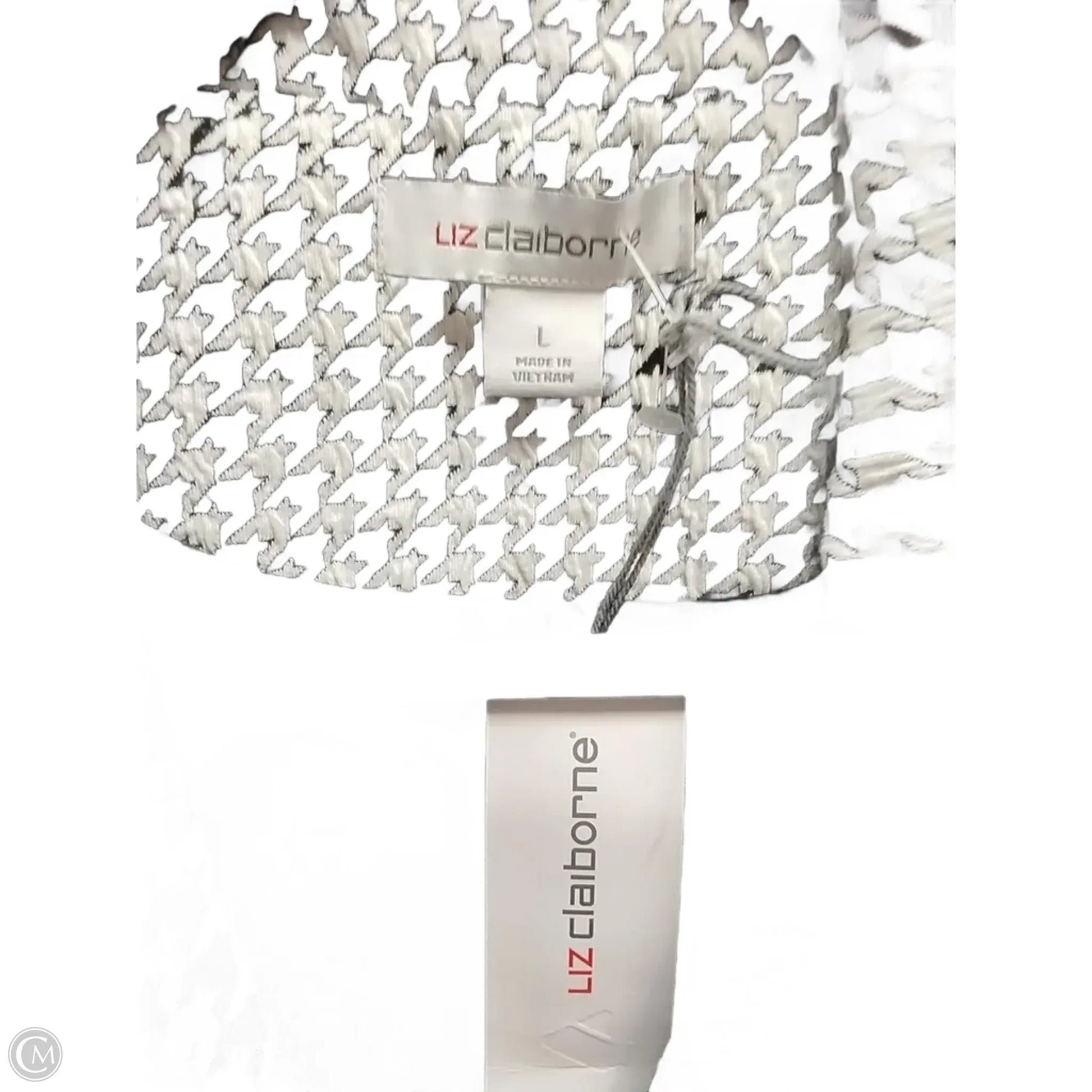 Elegantly tailored Liz Claiborne blazer in classic black and white, size L.