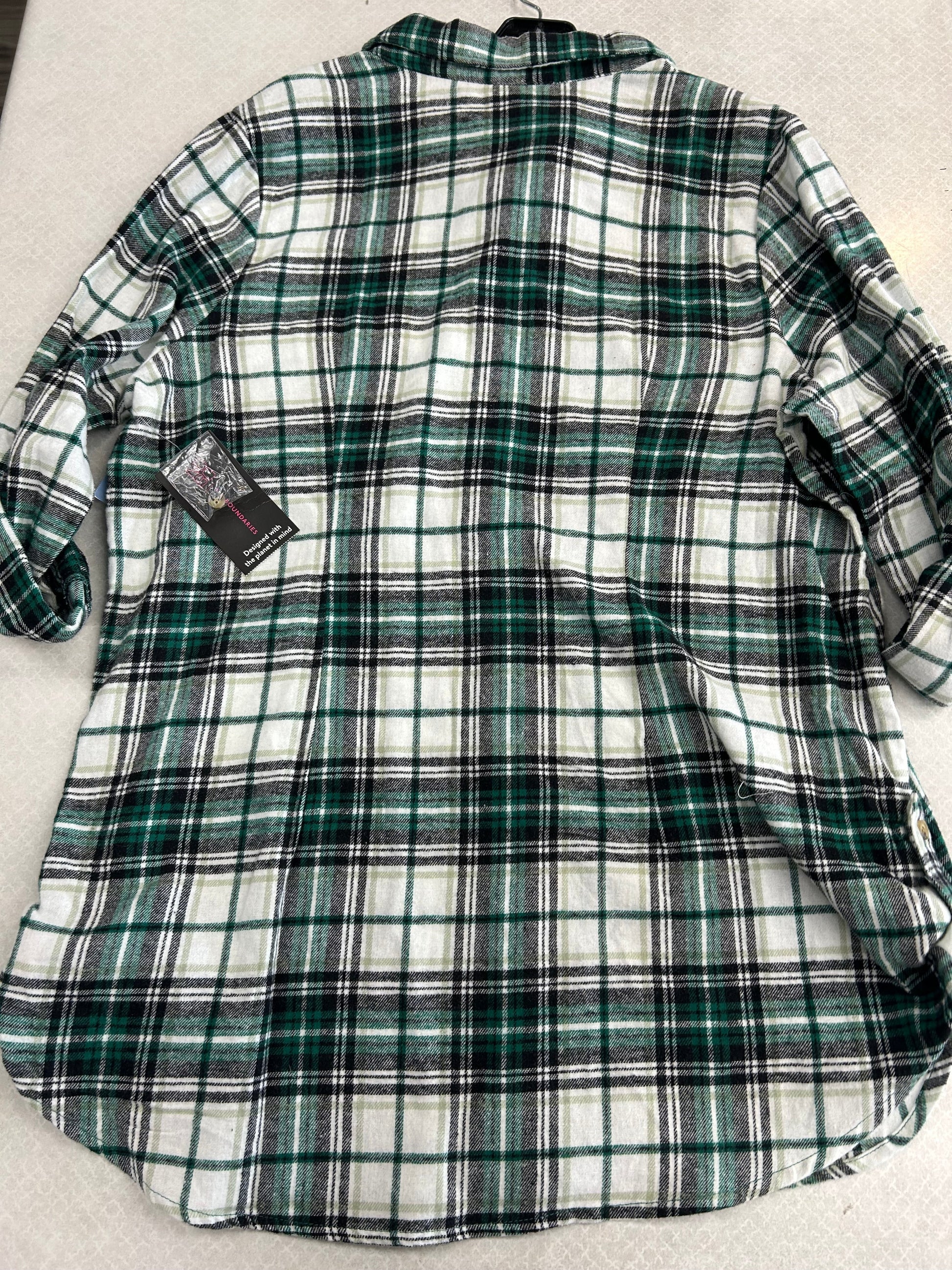 Blouse 3/4 Sleeve By No Boundaries In Green & White, Size: 2x