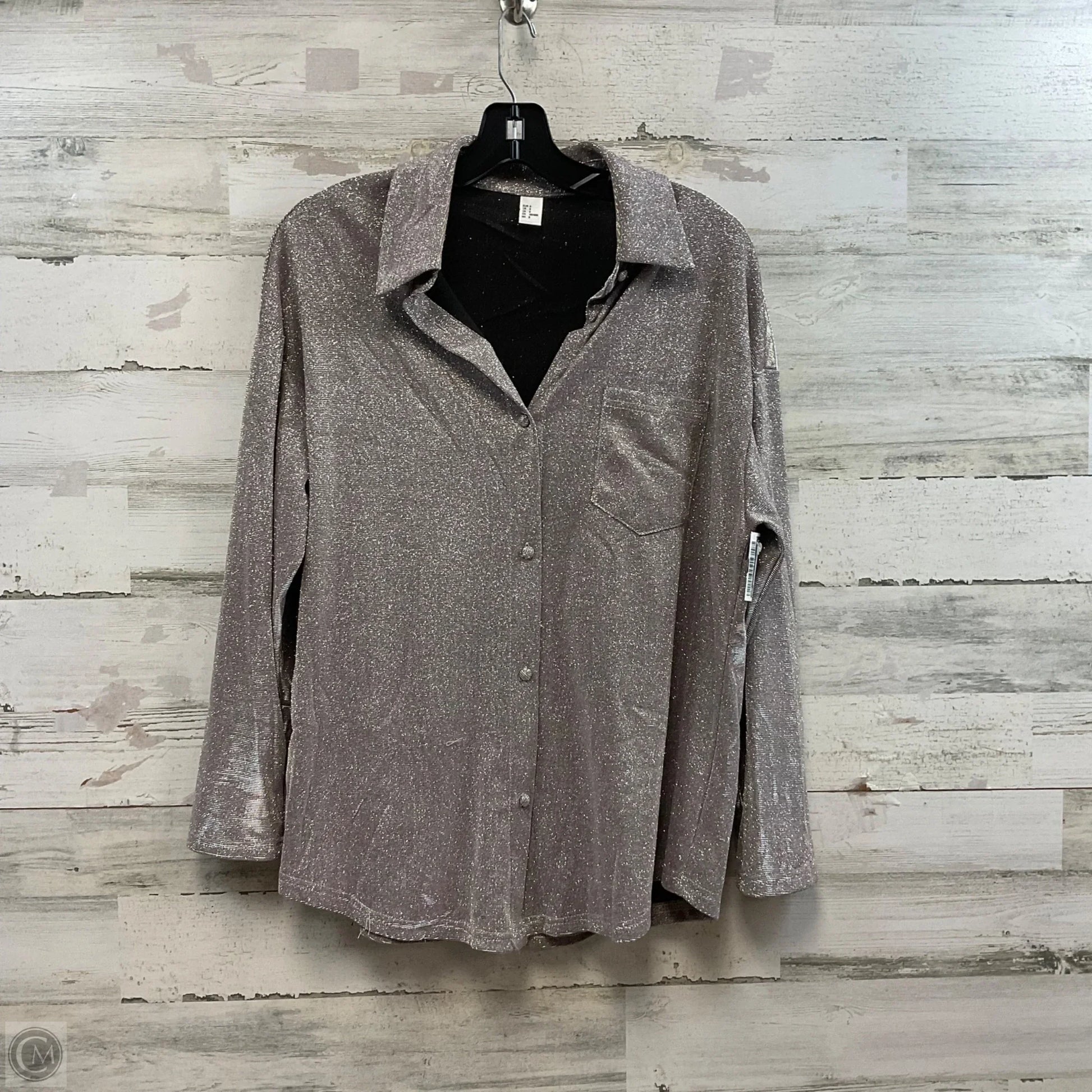 Blouse Long Sleeve By H&m In Silver, Size: S