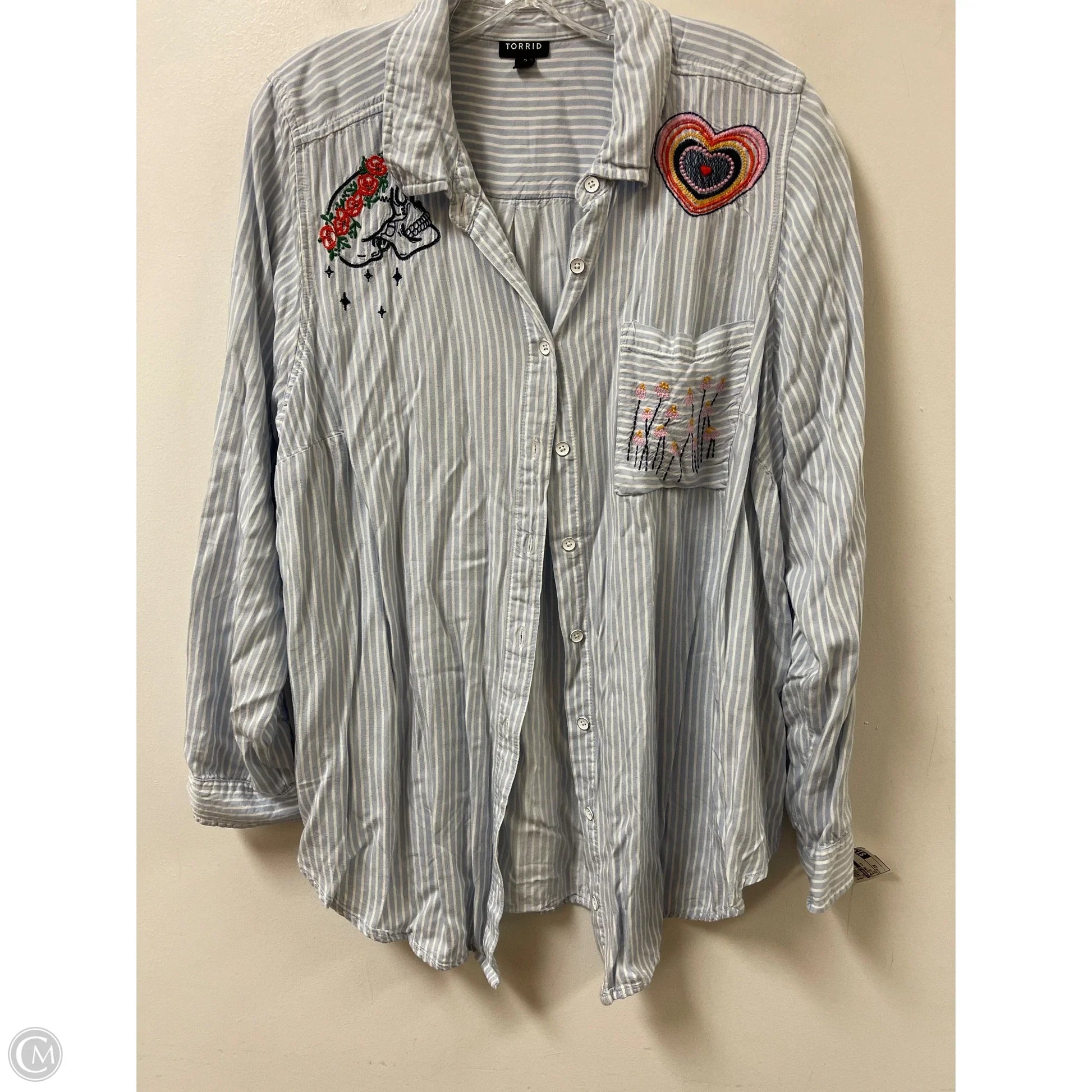 Torrid Blue Blouse, Size 2X: Classic elegance in long sleeves, a must-have for sophisticated wardrobes.