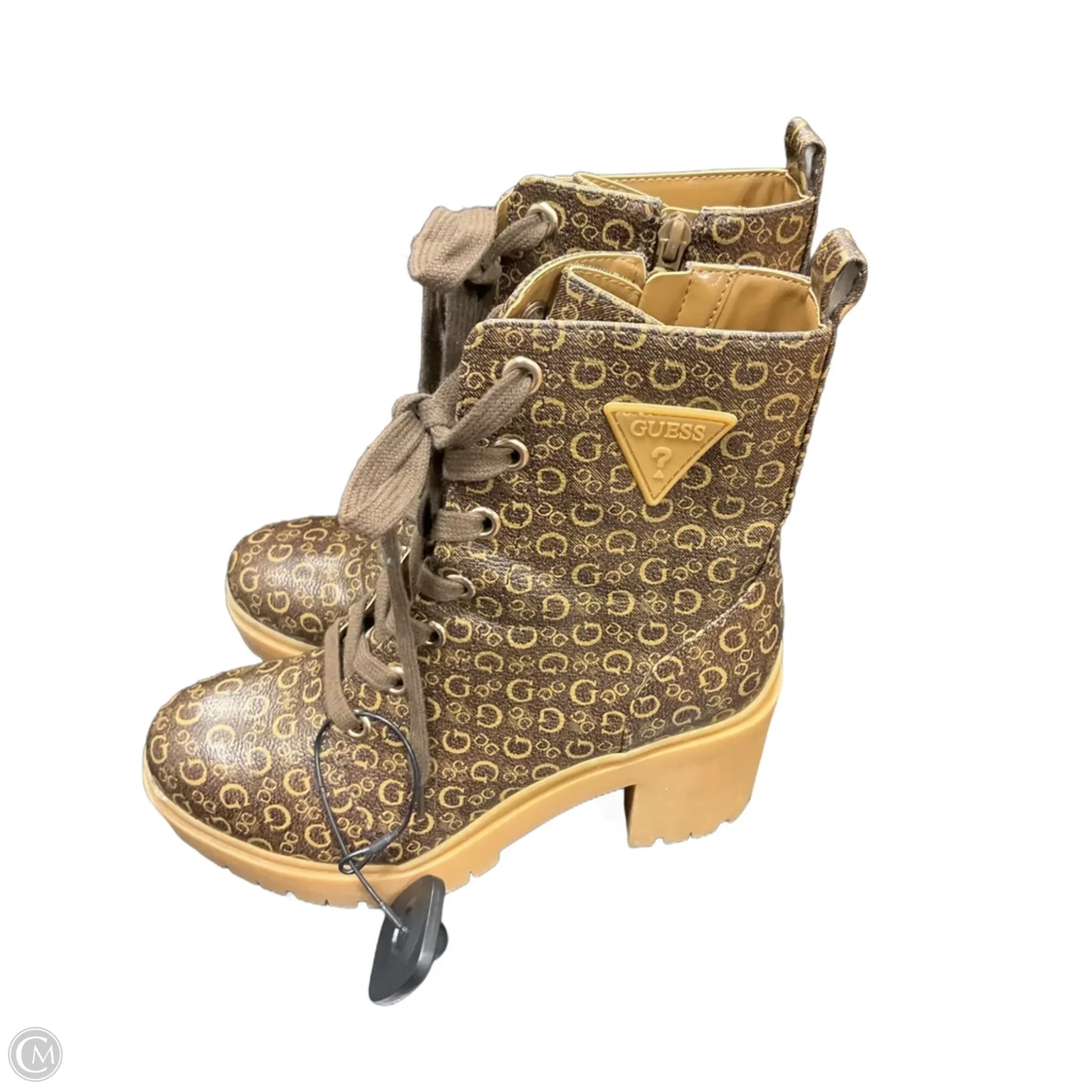 Boots Ankle Heels By Guess In Brown, Size: 8