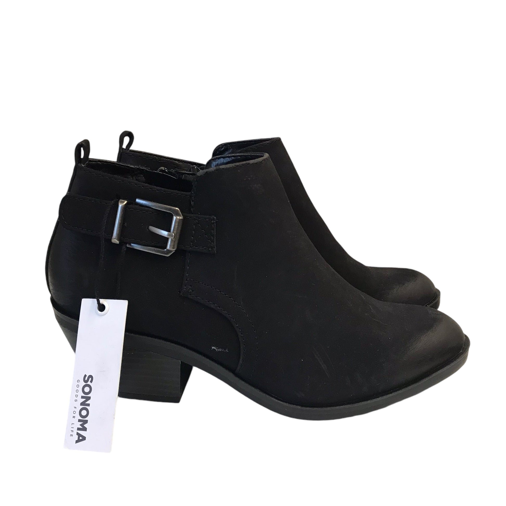 Elevate every step with Sonoma's NEW! Black Ankle Heel Boots in Size 7. Crafted with supple leather for a luxurious feel, these boots exude sophistication. From office chic to evening glam, make a statement in style.