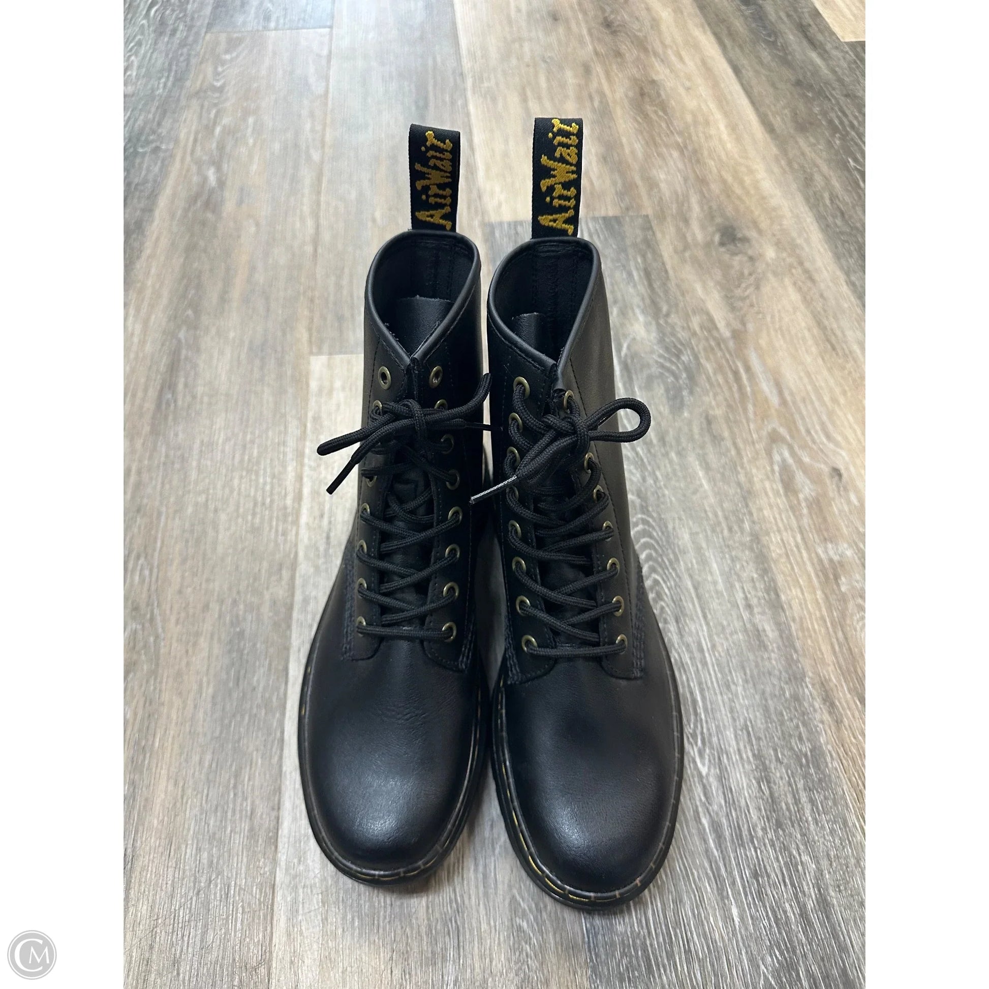 Command attention in these opulent black Dr. Martens combat boots, size 8. Unleash your bold style.