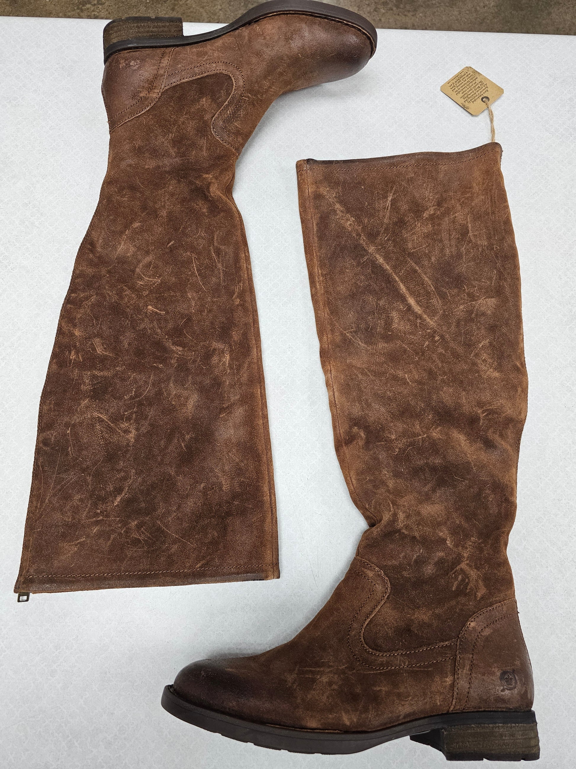 Boots Knee Heels By Born In Brown, Size:8