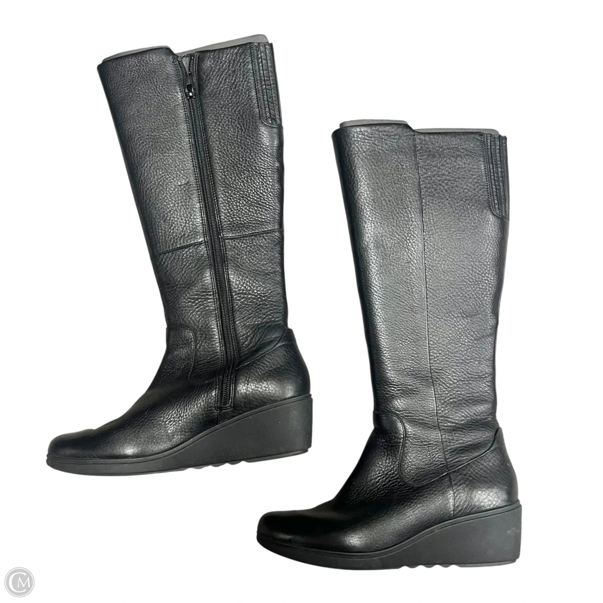 Boots Knee Heels By Clarks In Black, Size: 6