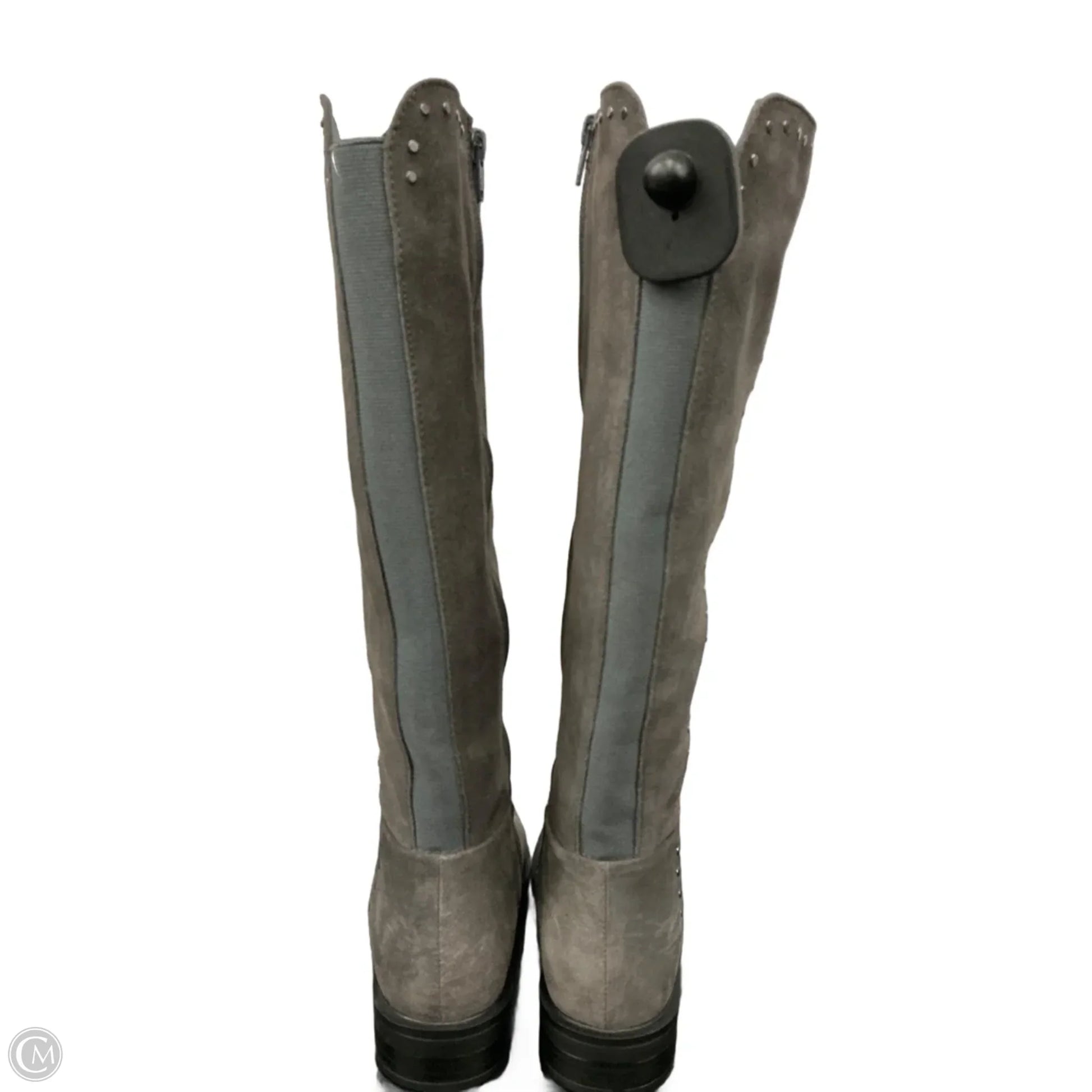 Boots Knee Heels By Clothes Mentor In Grey, Size: 6.5