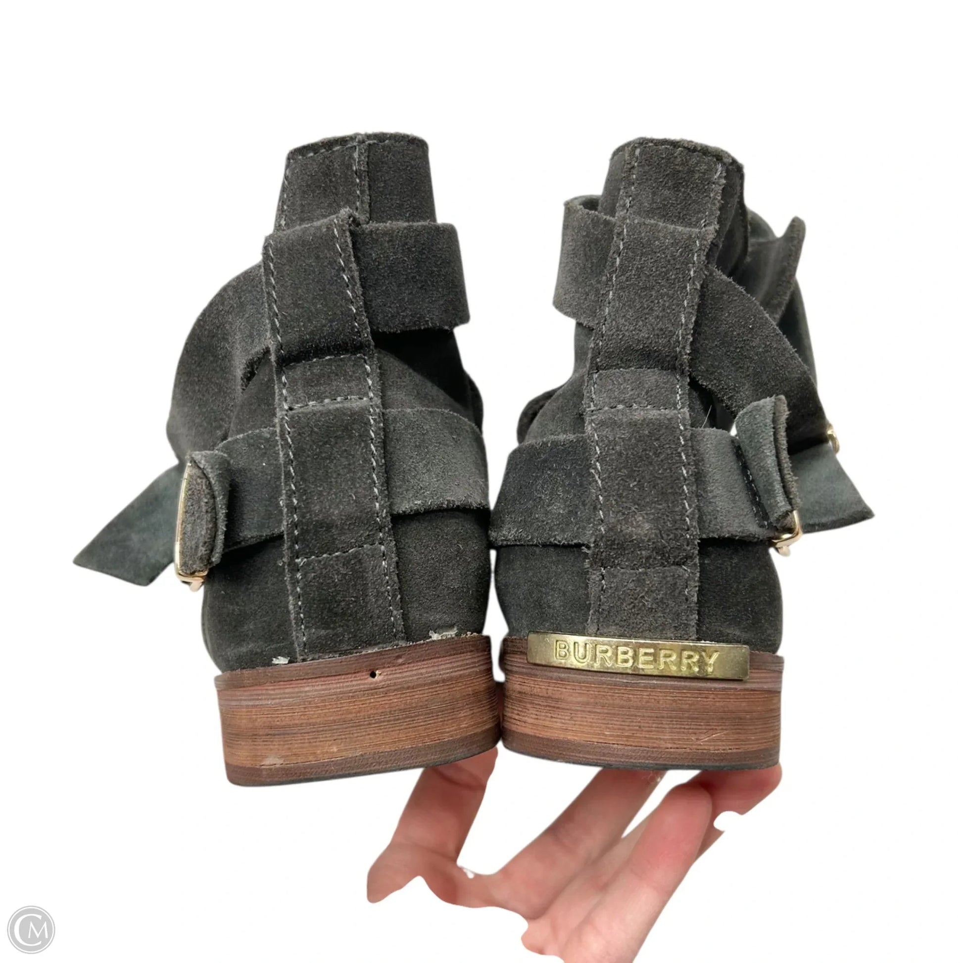 Other Info: SZ 38 - SLIGHT WEAR/MISSING BURBERRY BUCKLE ON ONE HEEL