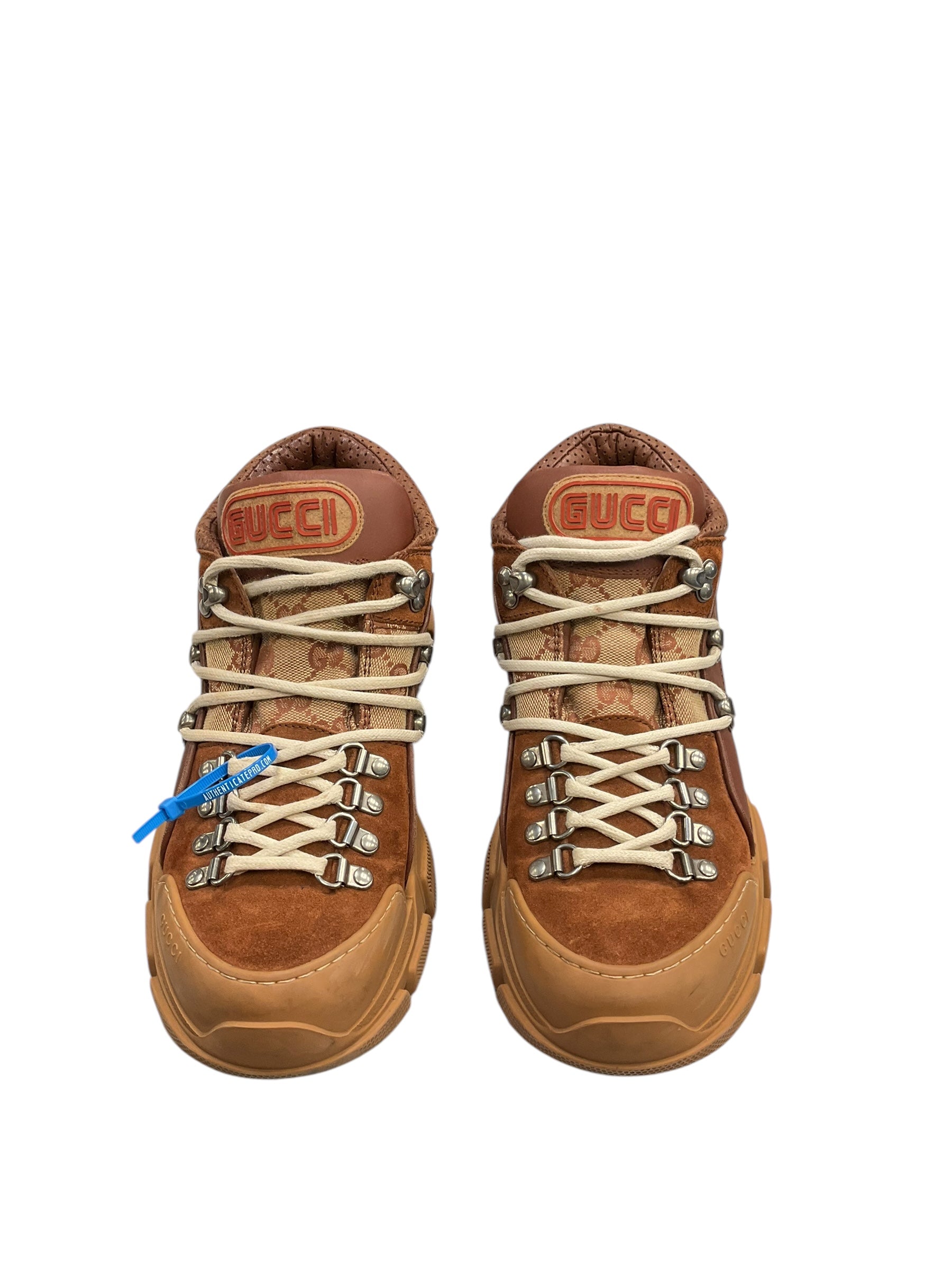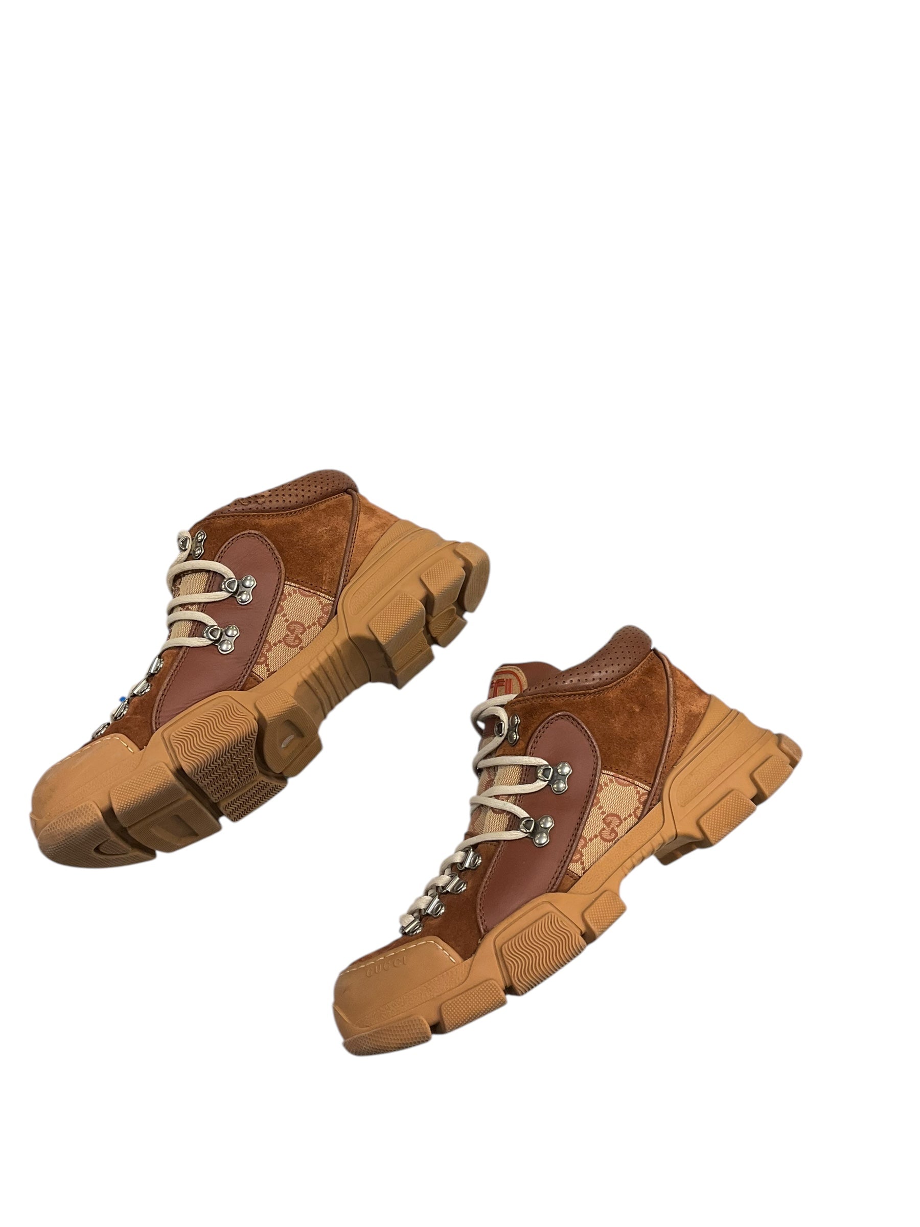 Boots Luxury Designer By Gucci In Bronze, Size: 8.5 Women | 7 Men