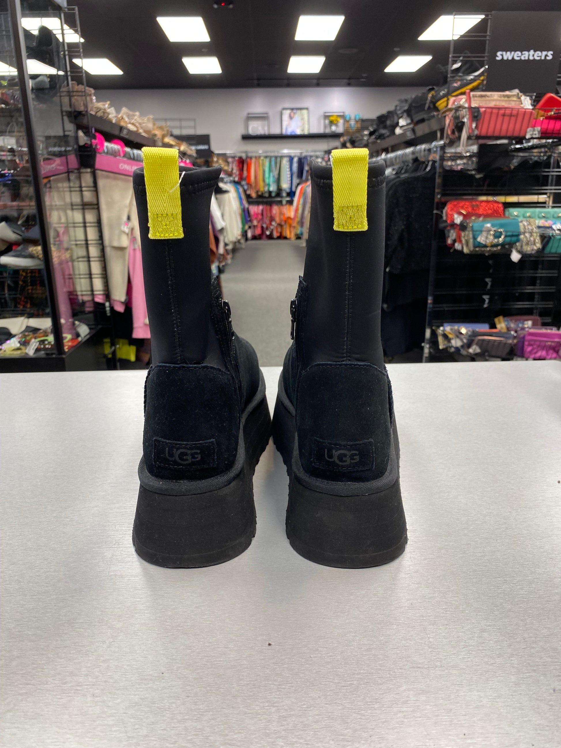 Boots Mid-calf Flats By Ugg In Black, Size: 10