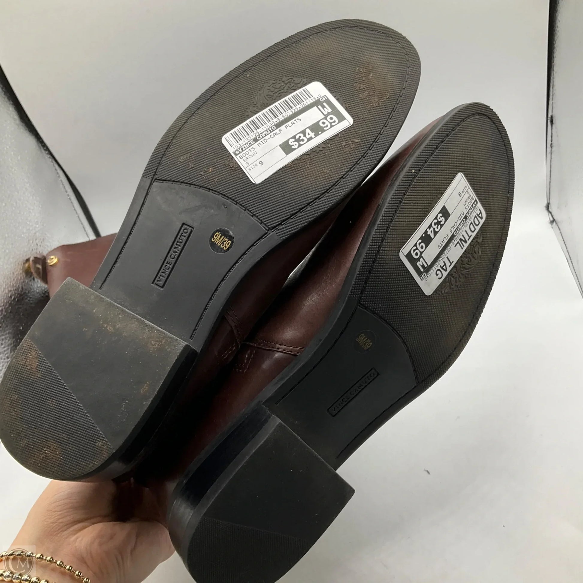 Wrap your feet in cozy chic with these Vince Camuto mid-calf flats in rich brown. Size 9 ensures a perfect fit for everyday comfort. Step up your style effortlessly!