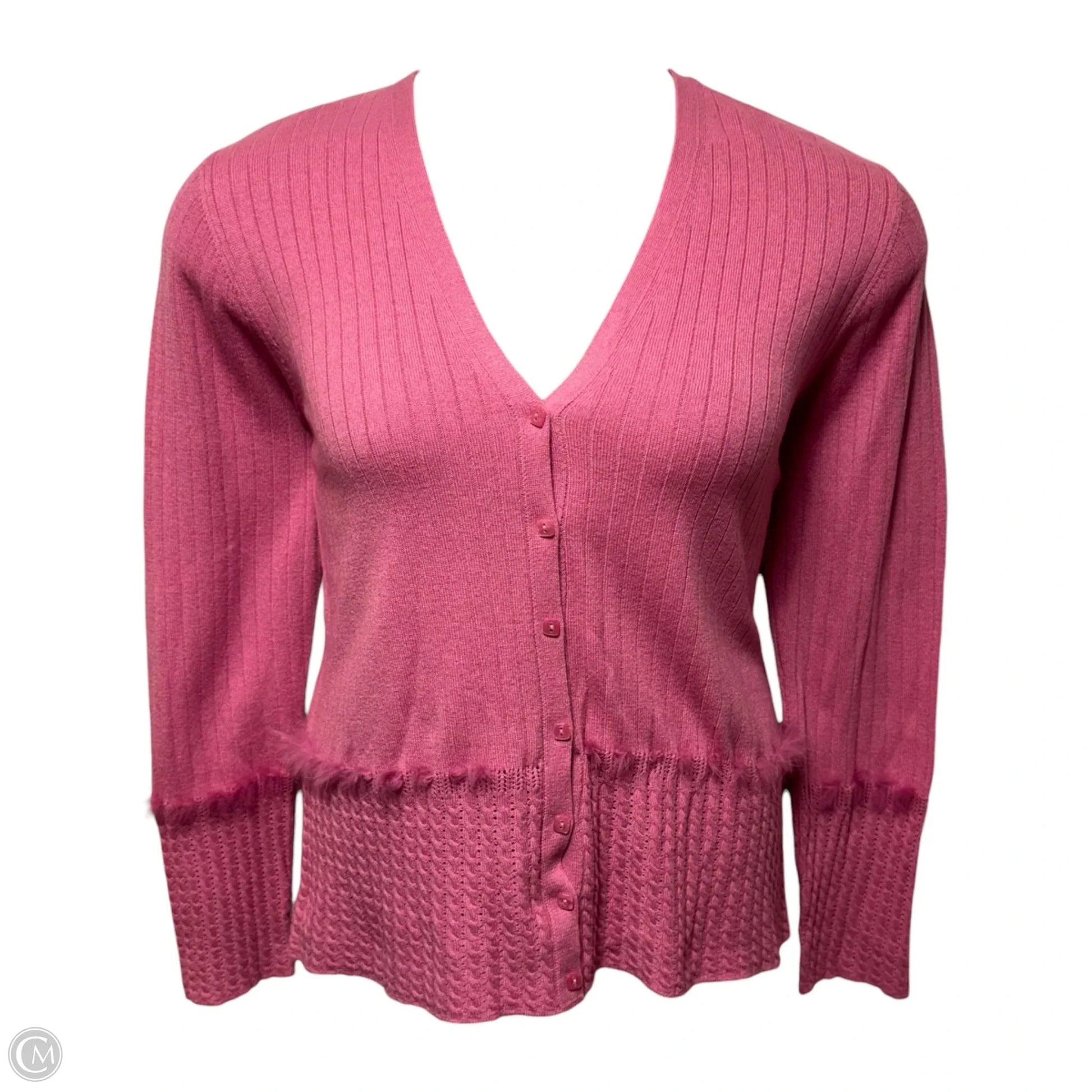 Cashmere Blend Rabbit Fur Trim Ribbed Cardigan Sweater Designer By Escada In Pink, Size: M (40 EU)