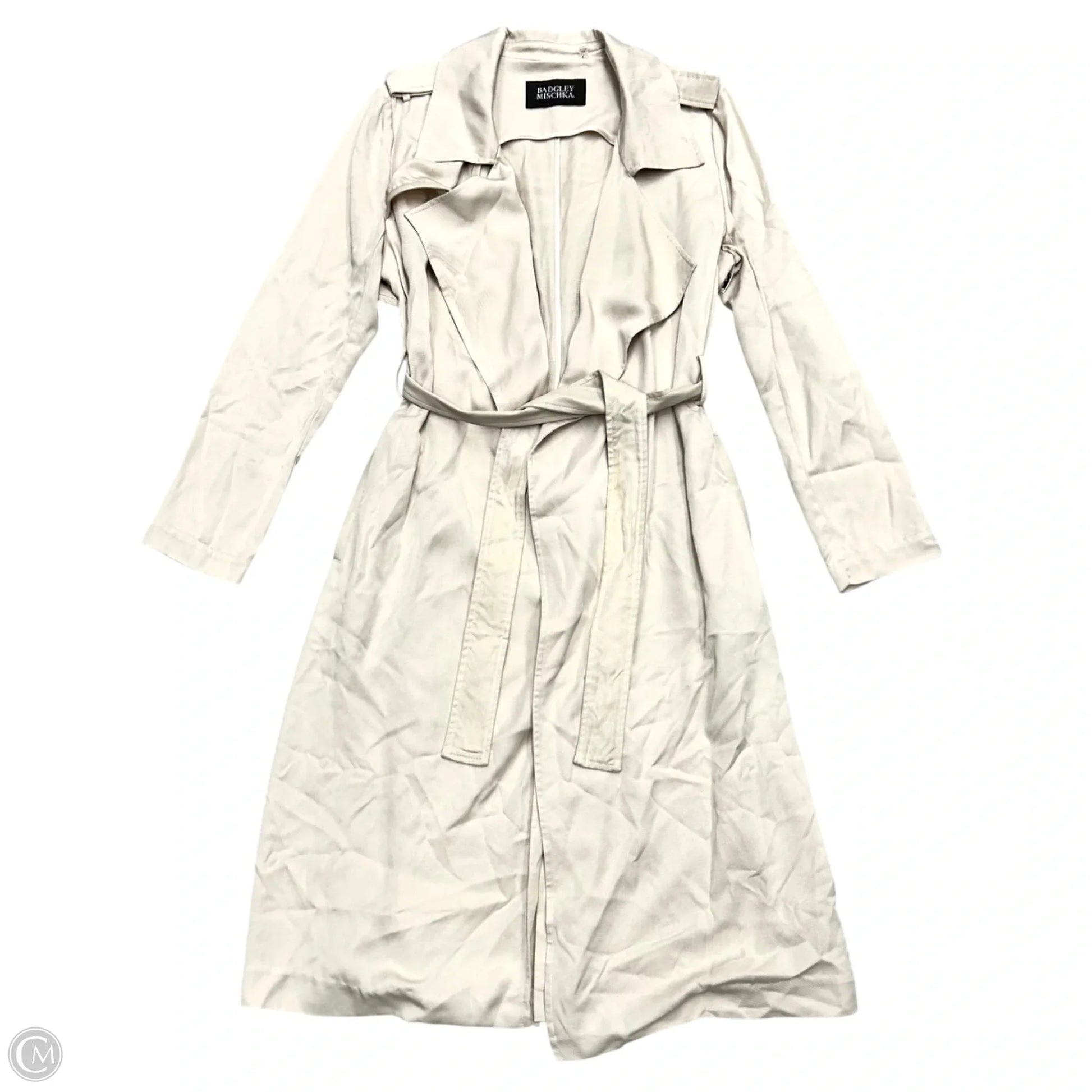 Coat Trench Coat By Badgley Mischka In Beige, Size: L