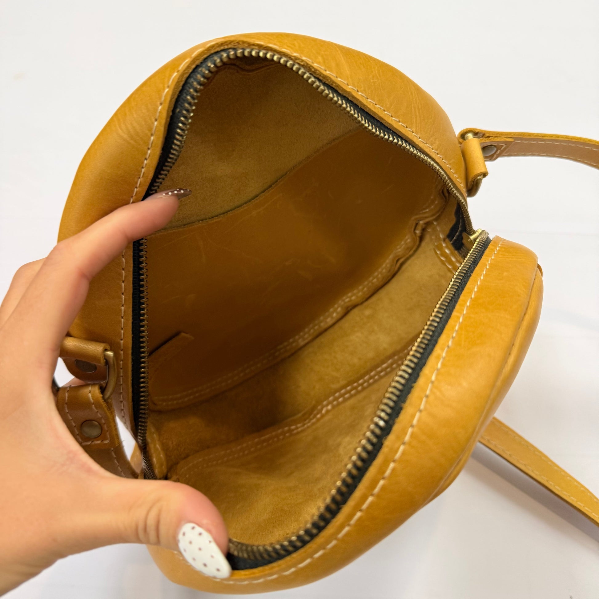 Add a touch of charm to your outfit with this medium-size leather crossbody by Portland Leather. Stylish and practical!