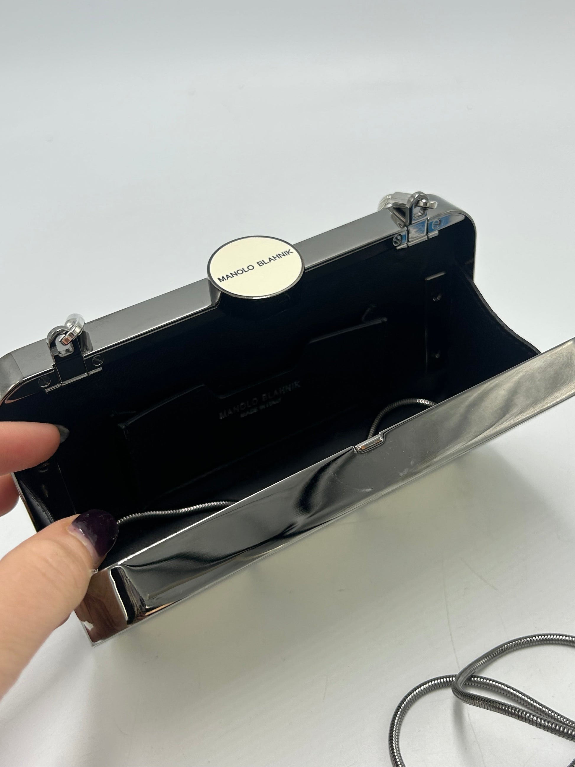 Other Info: Manolo Blahnik MINA GUNMETAL CLUTCH - RETAILS FOR $1655