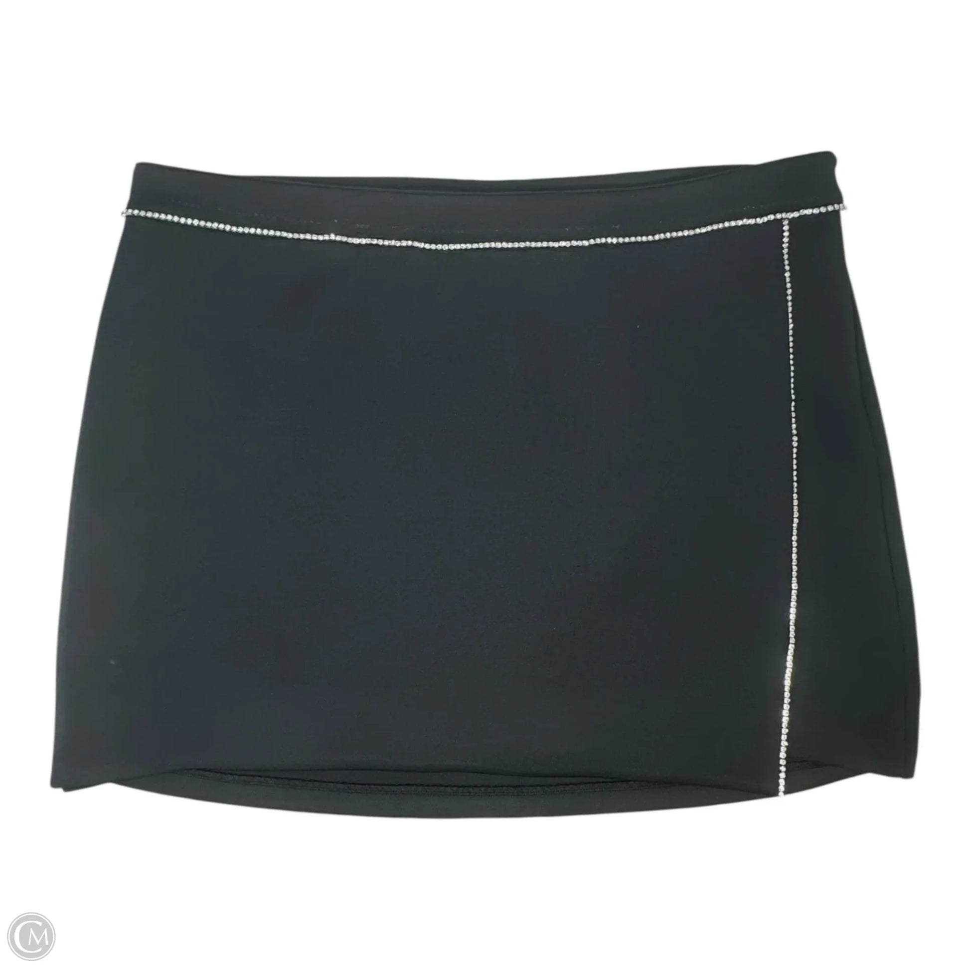 Diamanté Trim Skirt Mini & Short By Good American In Black & Silver, Size: 18