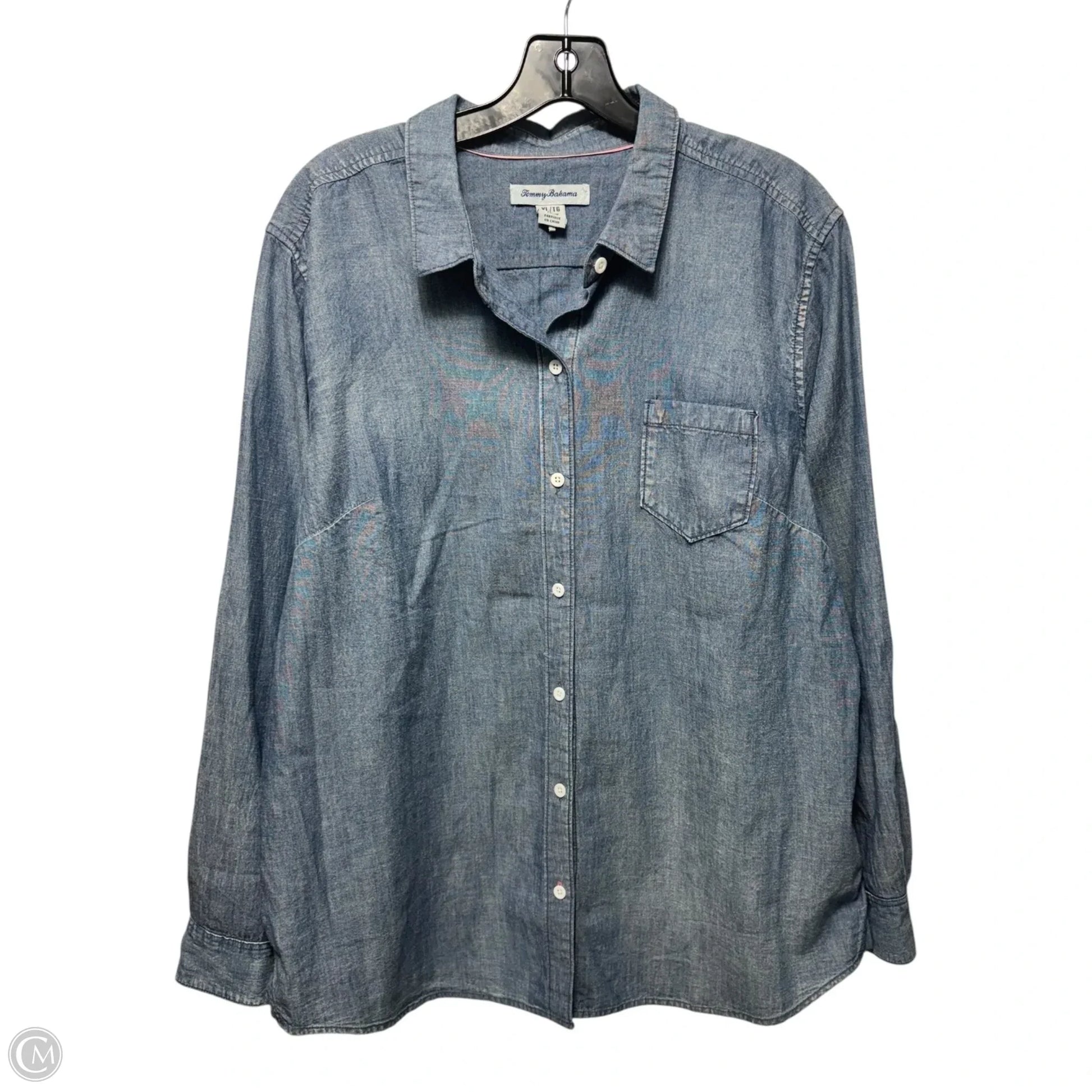 Embroidered Top Long Sleeve By Tommy Bahama In Blue Denim, Size: Xl
