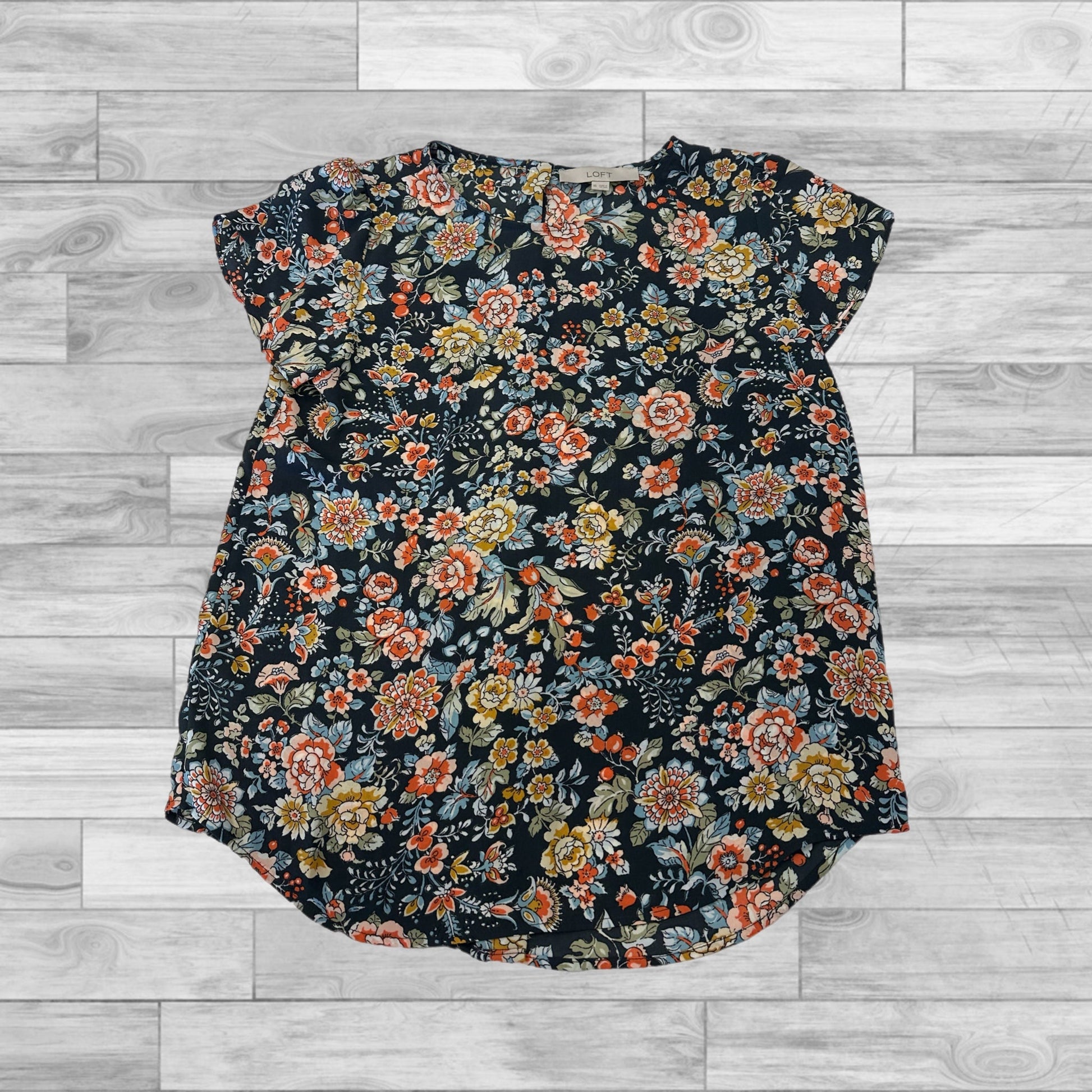 Floral Print Top Short Sleeve Loft, Size Xs