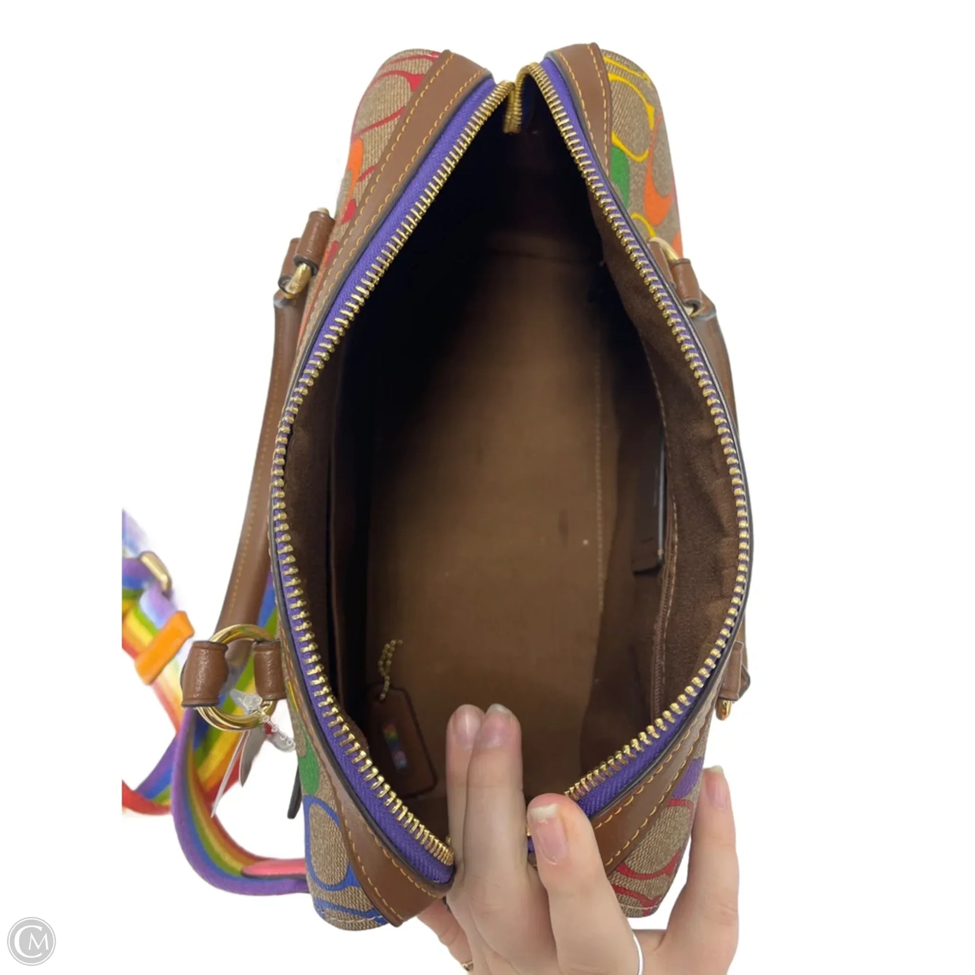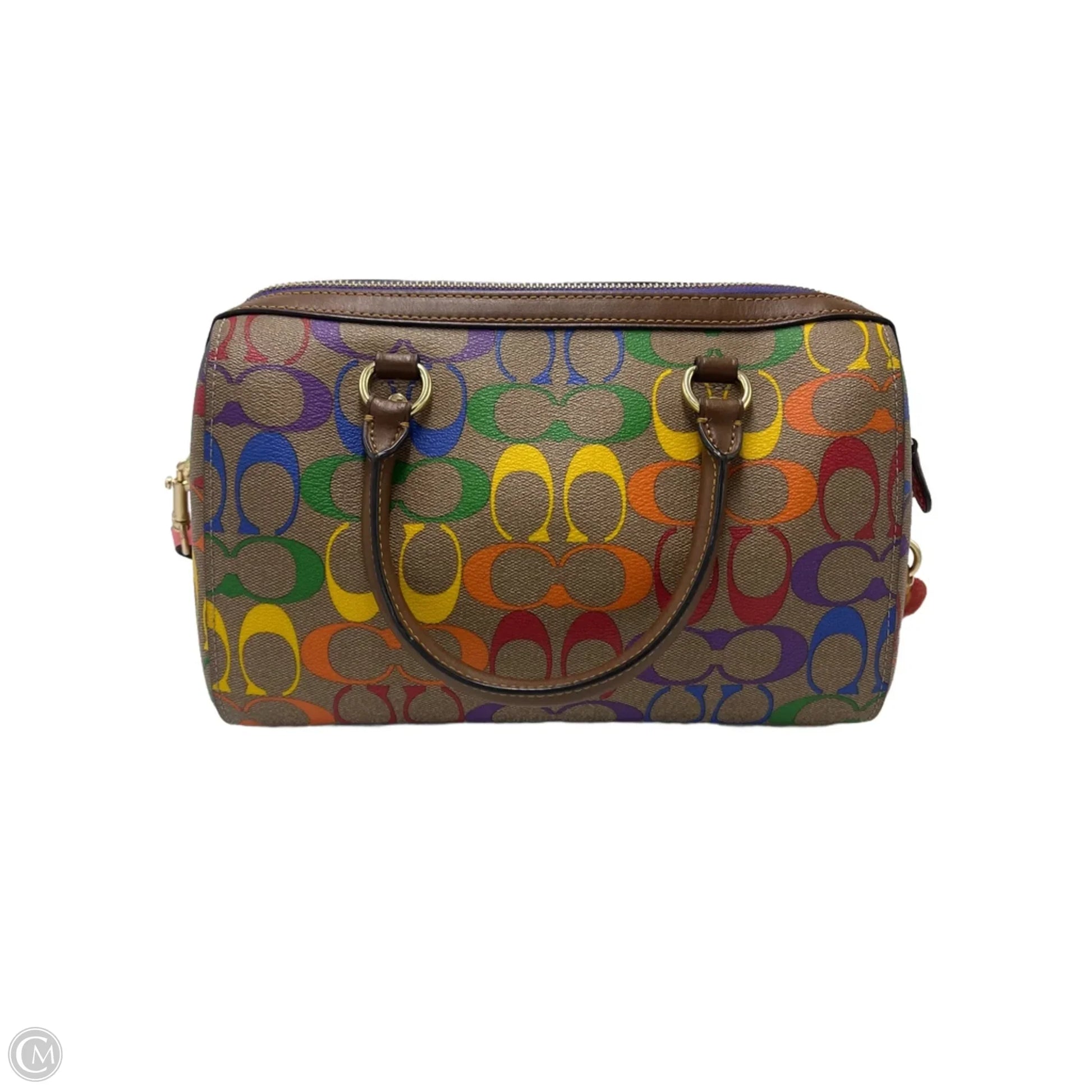 Other Info: COACH ROWAN IN RAINBOW CANVAS (PRIDE COLLABORATION). COMES WITH THE SHOULDER STRAP.