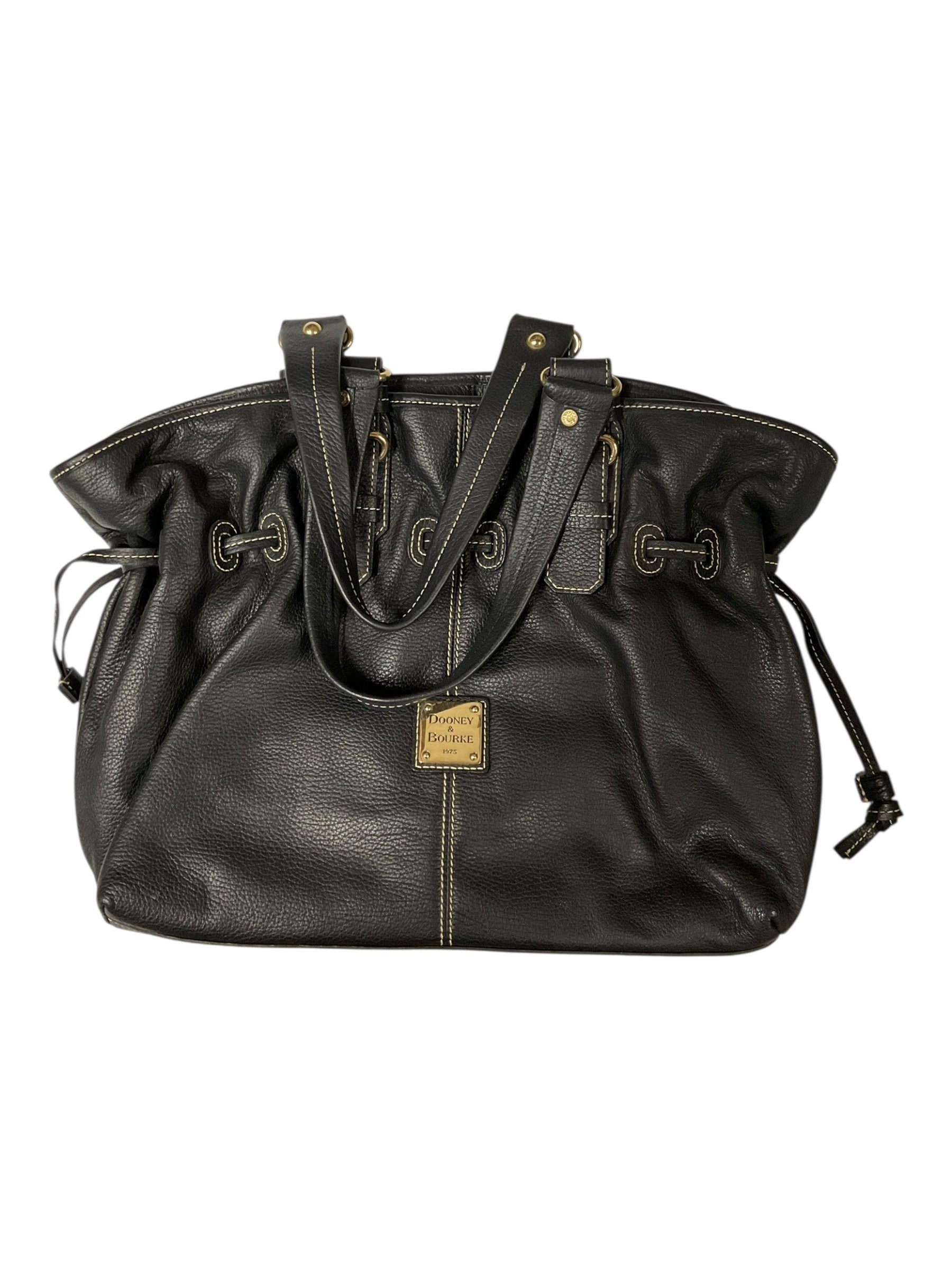 Sleek black Dooney & Bourke designer handbag, large size standout.