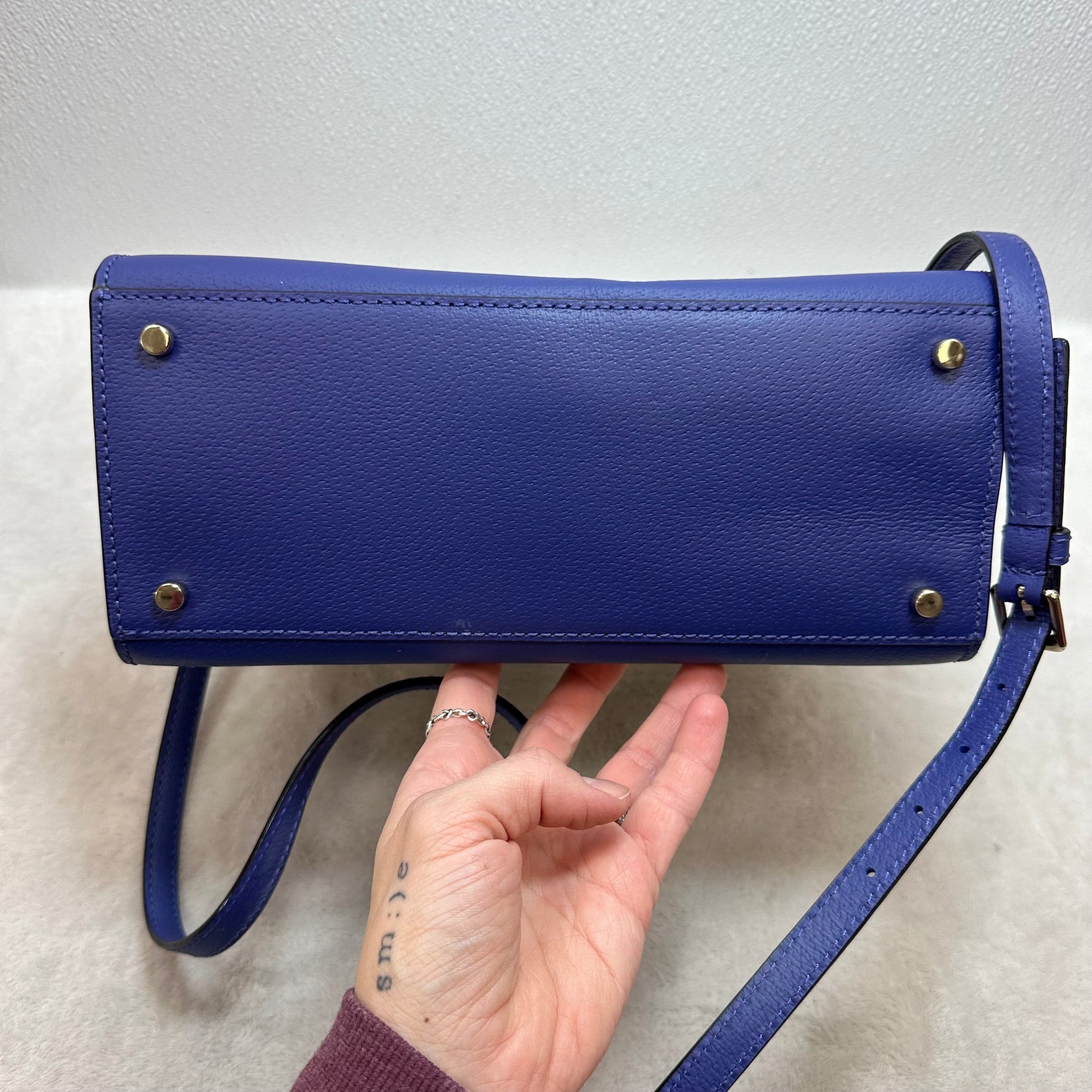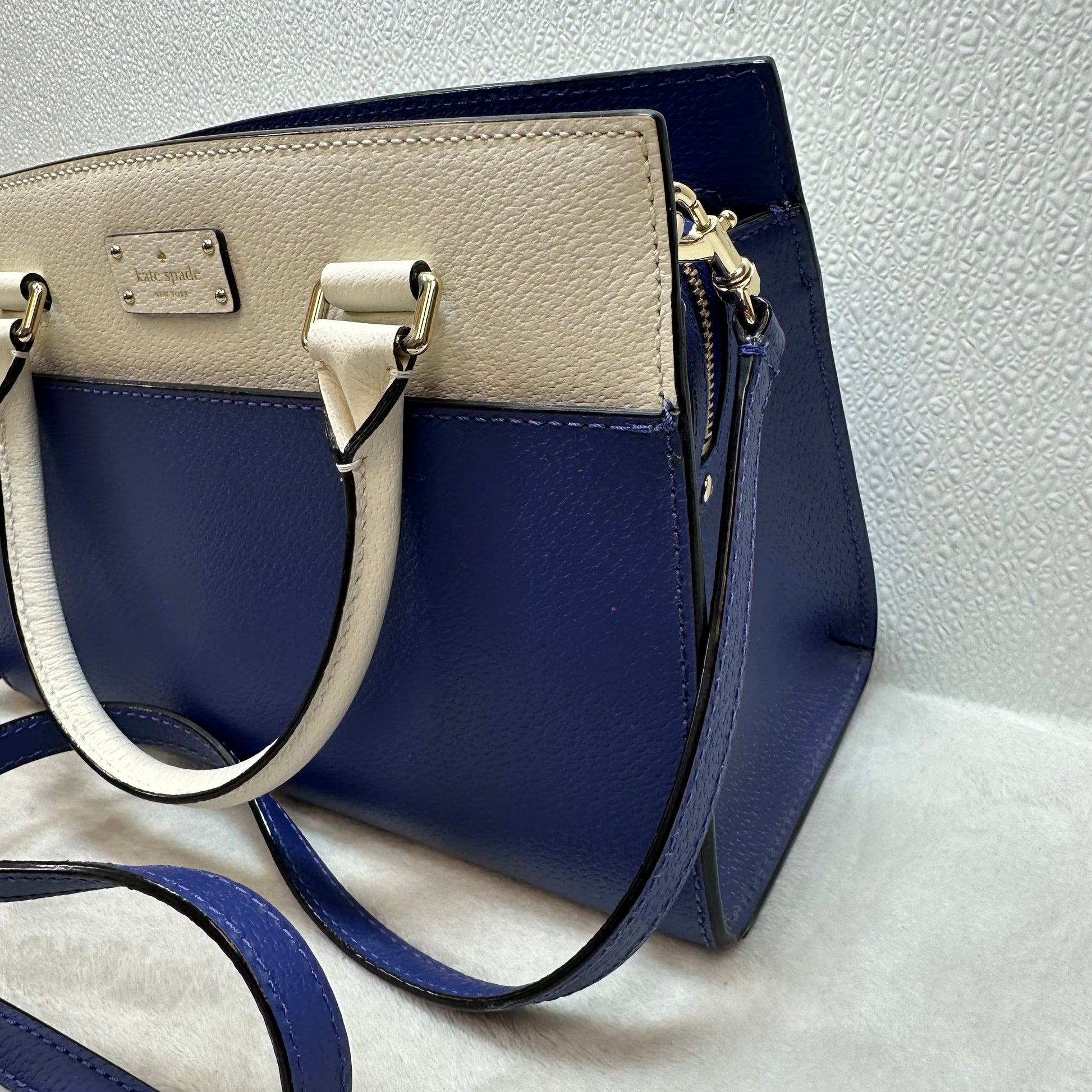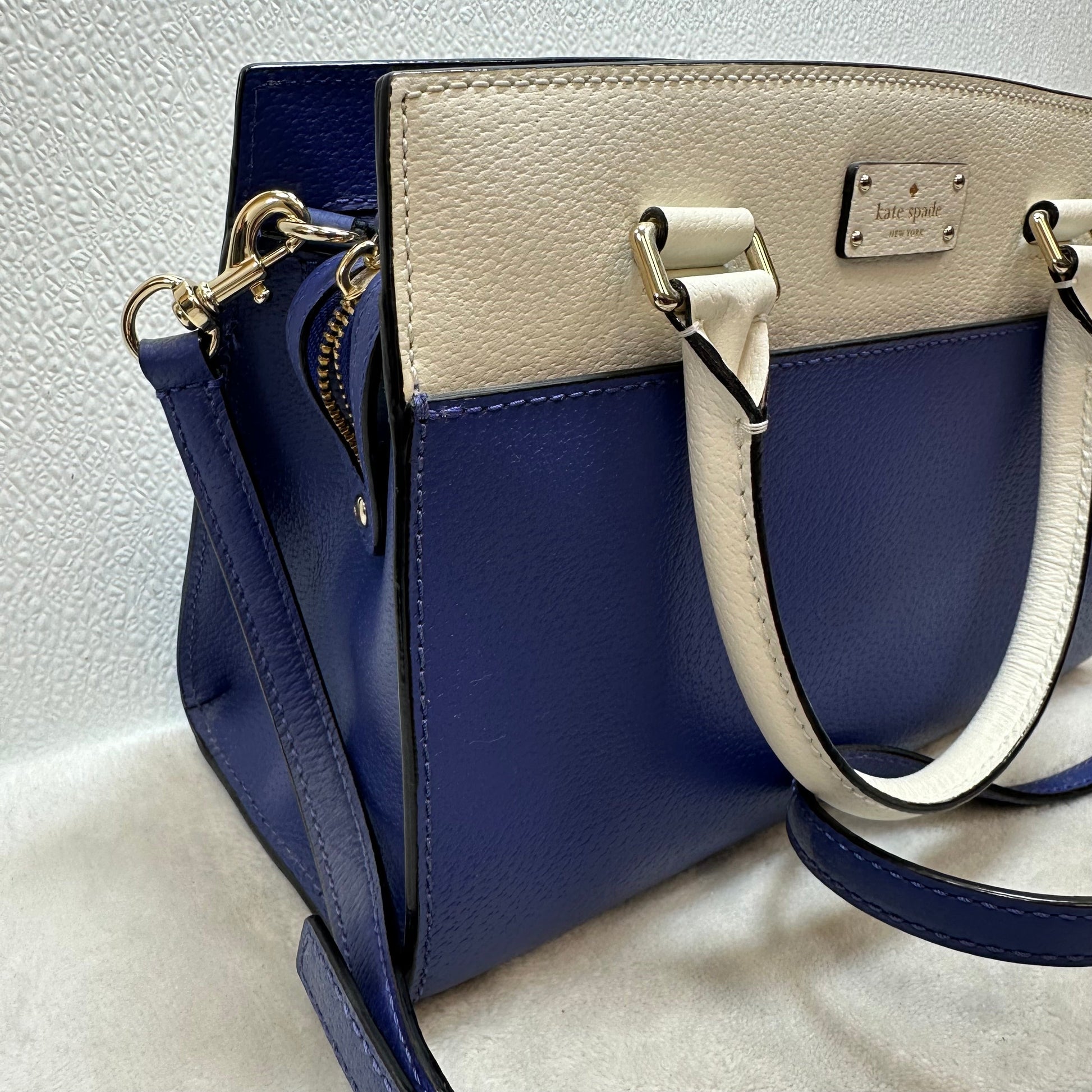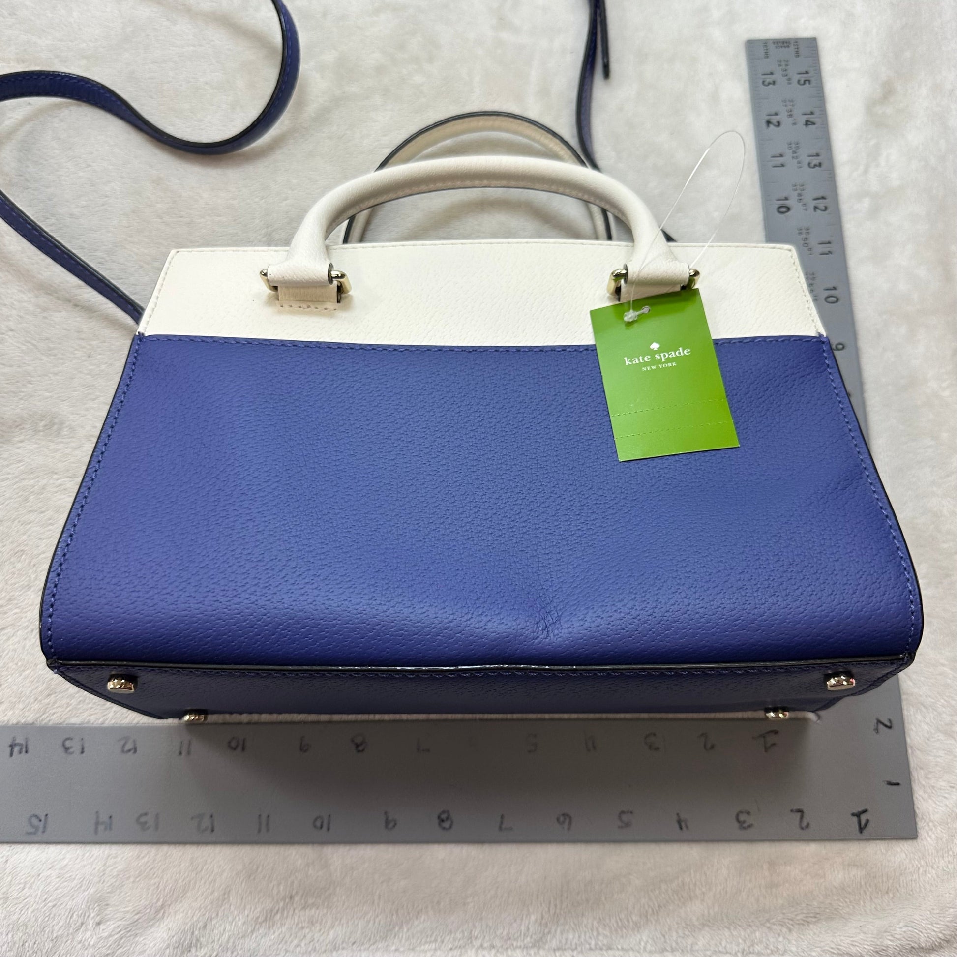 Grove Street Small Caley leather satchel in blue and white Handbag Designer By Kate Spade, Size: Small