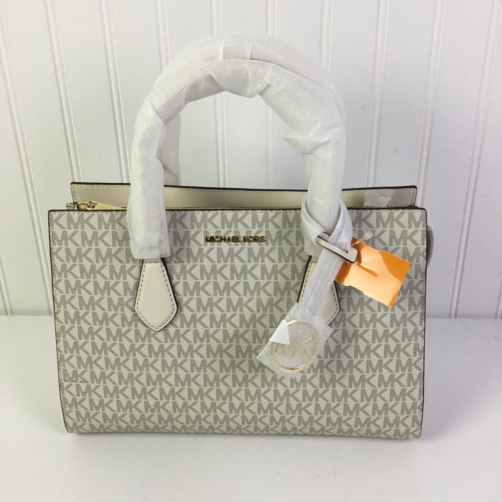 Unleash your inner diva with this Michael Kors cream handbag! The perfect accessory to show off your style without shouting it out.