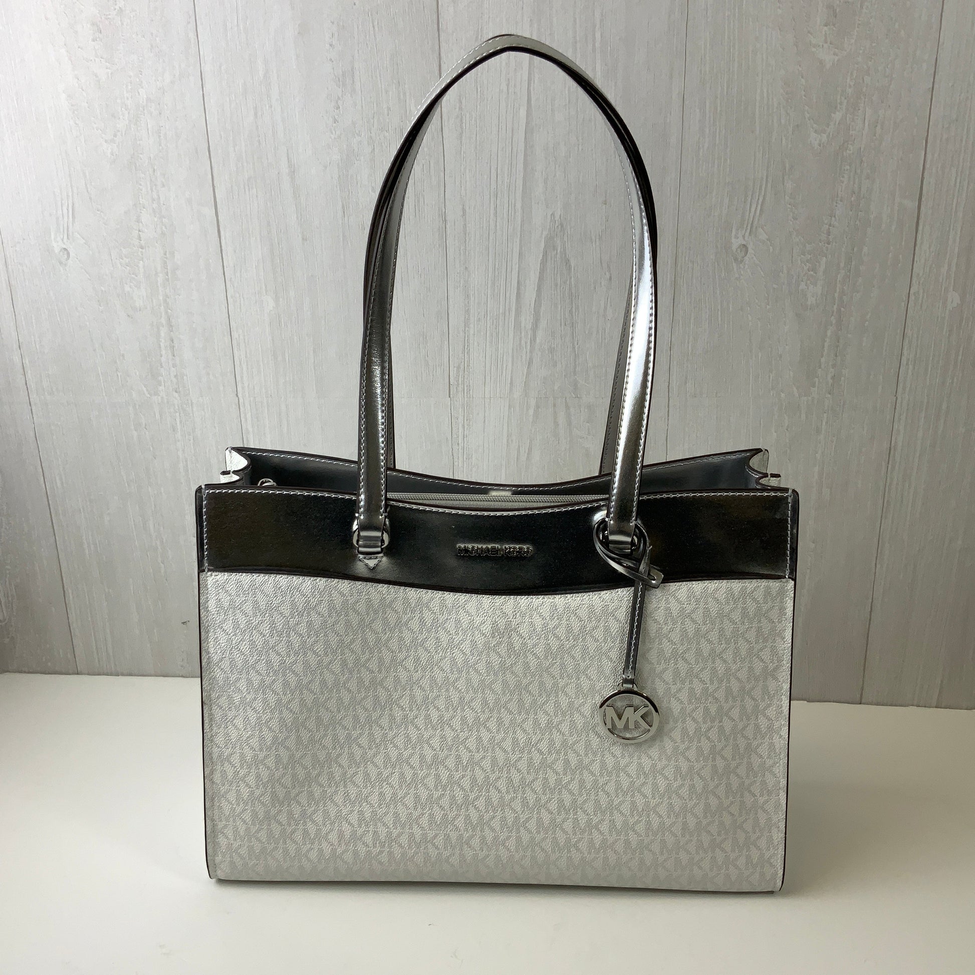 Handbag Designer By Michael Kors In Silver & White, Size:Large